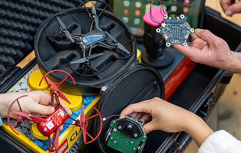 Das Landesmedienzentrum stellt den FSJlerinnen und FSJlern für die Dauer des Freiwilligendienstes ein MediaCase zur Verfügung, mit dem sie unter anderem Podcasts starten, mit einer Drohne Luftbilder aufnehmen oder Roboter durch Coding zum Leben erwecken können. Ein moderner Laptop sowie ein iPad runden die Leih-Ausstattung ab.