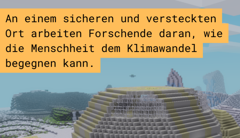 Besuche das internationale Klimafolgenabschätzungslabor (IKFAL), dass sich an einem sicheren Ort in der Minecraft- und Minetest-Welt versteckt hat. Entdecke dort im Simulationsdeck verschiedene Szenarien, die die Forschenden entwickelt haben. Hilf ihnen dabei, kreative und innovative Lösungen für eine klimagerechte Zukunft zu entwickeln.