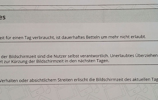 Rückblickend hat sich mein heutiger Medienkompetenztag voll ausbezahlt. Wir hatten ein gutes Gespräch über unsere Mediennutzung und haben sowohl unsere Regeln als auch Freiräume vertraglich festgehalten. Bin gespannt, wie lange der Hausfrieden hält.