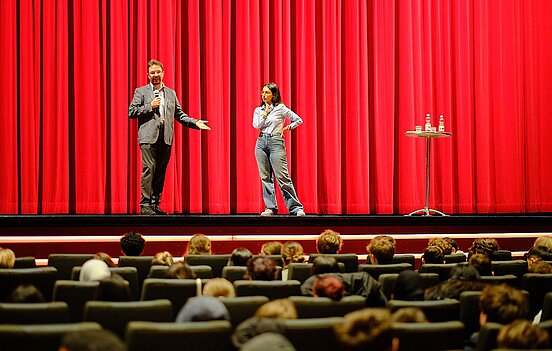 Neben den Filmvorführungen selbst führte die SchulKinoWoche in diesem Jahr 91 Filmgespräche für Schulklassen passend zu den angebotenen Filmen durch. Ein Höhepunkt des diesjährigen pädagogischen Begleitprogramms war das Filmgespräch zum historischen Drama „The Zone of Interest“ mit dem Beauftragten der Landesregierung gegen Antisemitismus und für jüdisches Leben, Dr. Michael Blume.