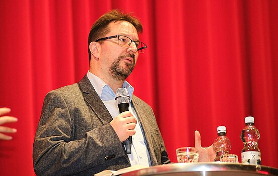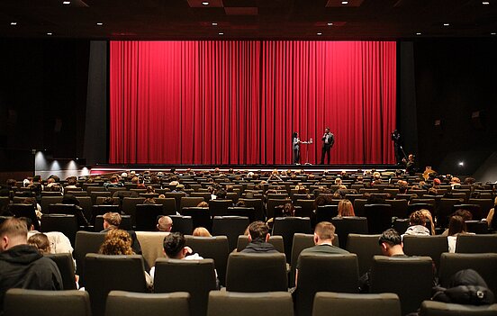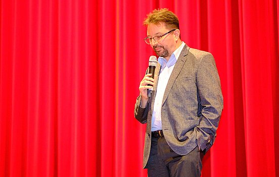 Beim Filmgespräch zu „The Zone of Interest“ diskutierten 350 Schüler/-innen mit dem Antisemitismusbeauftragten Dr. Michael Blume über die Bedeutung des Films sowie die Geschichte und Gegenwart des Antisemitismus. | Foto: LMZ/Michael Damböck