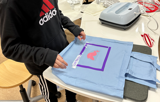 In unseren Makerspace-Räumen am SMZ Stuttgart setzten sie die Designs anschließend praktisch um: Unter medienpädagogischer Begleitung konnten die Kinder die entwickelten Layouts schneiden, positionieren und mit Cricut plottern. Ein besonderes Erfolgsgefühl hatte die gesamte AG, als sie das erste Mal ihre Designs auf den T-Shirts und Taschen sahen.