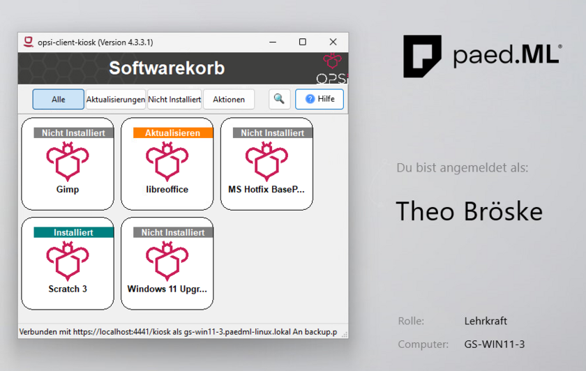 Mit den neuen opsi-Produkten „opsi-auto-update“ und „opsi-client-kiosk“ bietet die paed.ML Linux/GS ab Version 8.0 zwei leistungsstarke Werkzeuge zur Softwareverwaltung im Schulnetz. Beide Tools unterstützen die IT-Administration dabei, Updates und Anwendungen einzuspielen, entweder automatisiert beim Hochfahren des Rechners oder nutzergesteuert beim Start über eine einfache Desktop-Verknüpfung.
