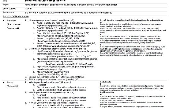 Beim Projekt „Europe United: Let’s change the world“ ging es darum, sich in neun bis zehn Schulstunden mit dem Thema „Heroes & Causes“ (dt. Helden und gute Zwecke) auseinanderzusetzen. Dieses Projekt passt in vielerlei Hinsicht zum Bildungsplan Englisch. Dort werden Fremdsprachenkenntnisse als wichtige Grundlage für den internationalen Dialog verstanden, fremde Denkmuster sollen kennengelernt, internationale Begegnungen gefördert werden und Englisch wird als Kommunikationssprache verstanden. Thematisch fordert der Bildungsplan die Beschäftigung mit der Rolle des Individuums in der Gemeinschaft („making a difference“) und der Beziehung des Individuums zu seinem Lebensraum. Sprachlich werden alle Kompetenzen (Hör-/Sehverstehen, Leseverstehen, Schreibkompetenz, Sprechkompetenz, ggf. Sprachmittlung, d.h. kultursensibles Dolmetschen) berücksichtigt, die der Bildungsplan fordert. Auch Wortschatzarbeit und Grammatik sind explizit Teil des Projekts.