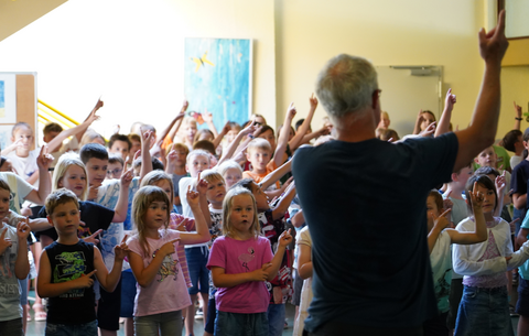 Kinder der Grundschule Simonswald bei ihrem Anfangsritual der Stunde: dem gemeinsamen Robo-Song. | Foto: Grundschule Simonswald